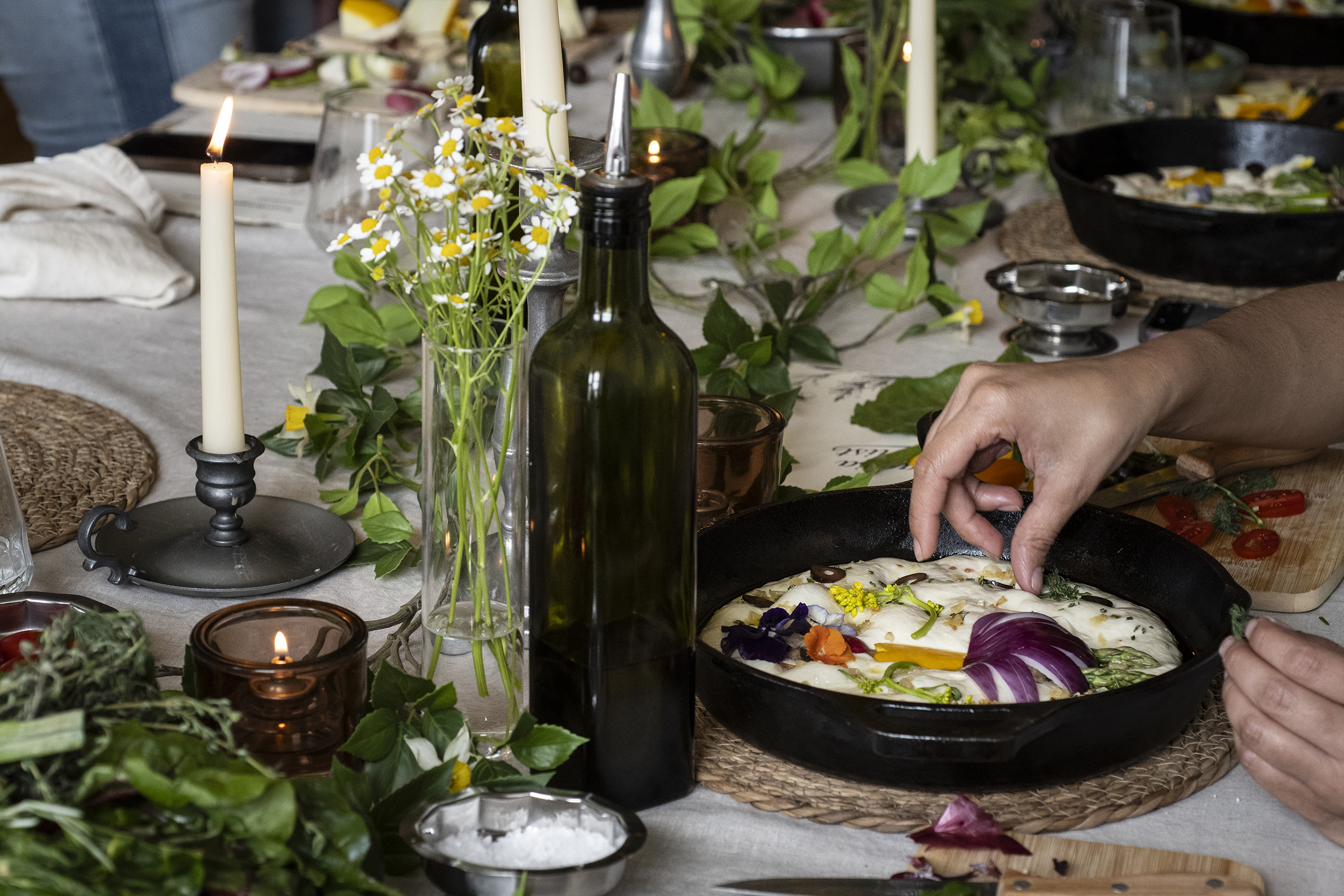 One day, while just “playing around” baking sourdough bread, Ashley was inspired to create sourdough focaccia.  Naturally artistic, she embellished her new product with various floral touches to create unique designs and… voila! Much to her surprise and delight, there was huge demand for her fanciful focaccia and how she makes it; focaccia classes became the natural path for her uniquely tasty brand. Thus began the journey of the Focaccia Flourist. “Everything started with making focaccia for friends, then progressed to custom design orders, having a booth at events, pairing my bread with wine at Whitecliff Vineyard, and teaching classes at different locations in the Hudson Valley.”